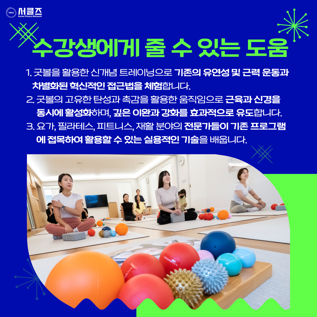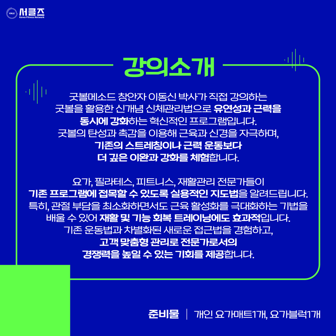 굿볼을 활용한 신개념 유연성 증진 & 근력 강화 프로그램 / 이동신 / 03.28(금) 11:00~12:30SOLDOUT
