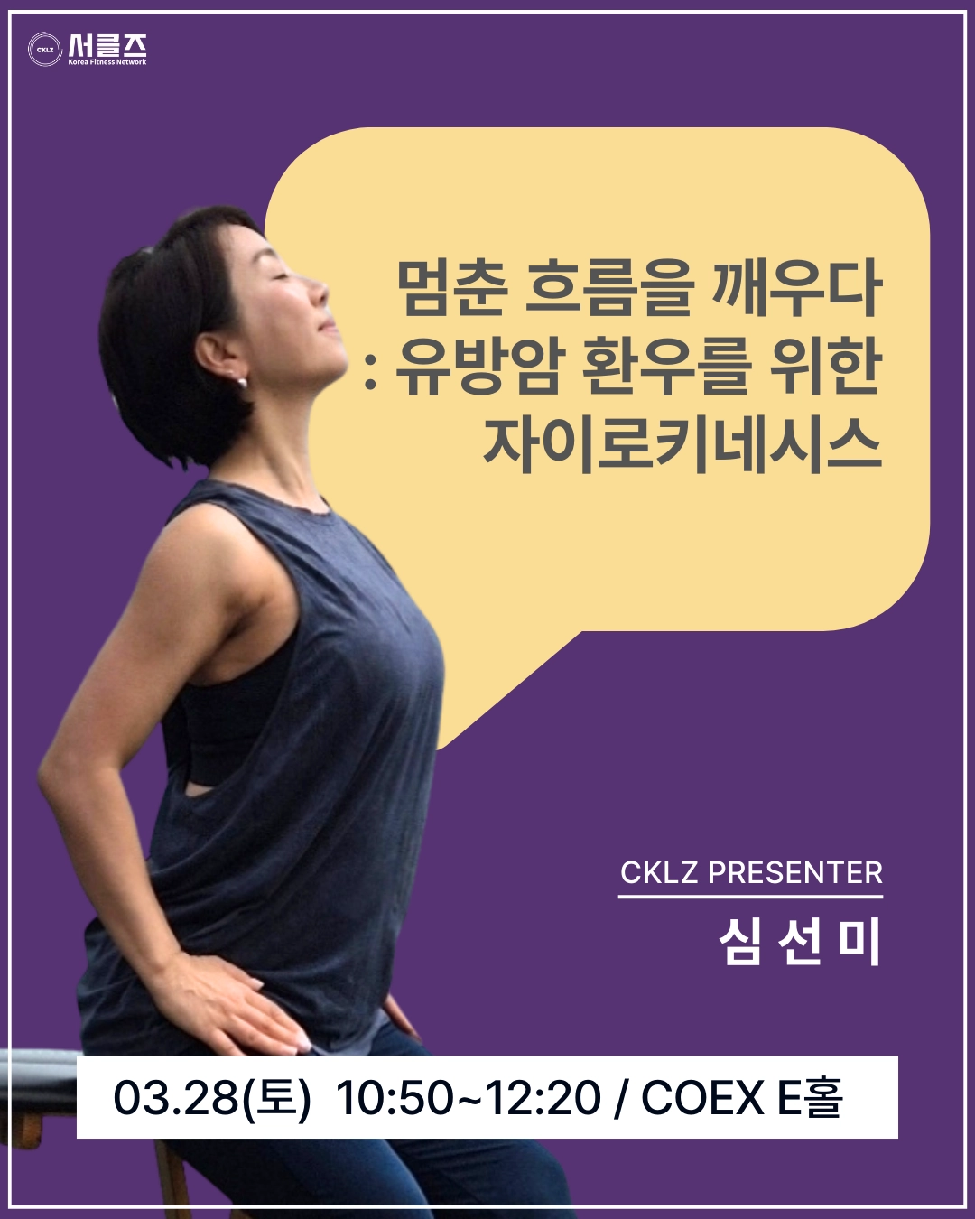 멈춘 흐름을 깨우다 : 유방암 환우를 위한 자이로키네시스 / 심선미 / 03.28(토) / 10:50~12:20 / COEX E홀