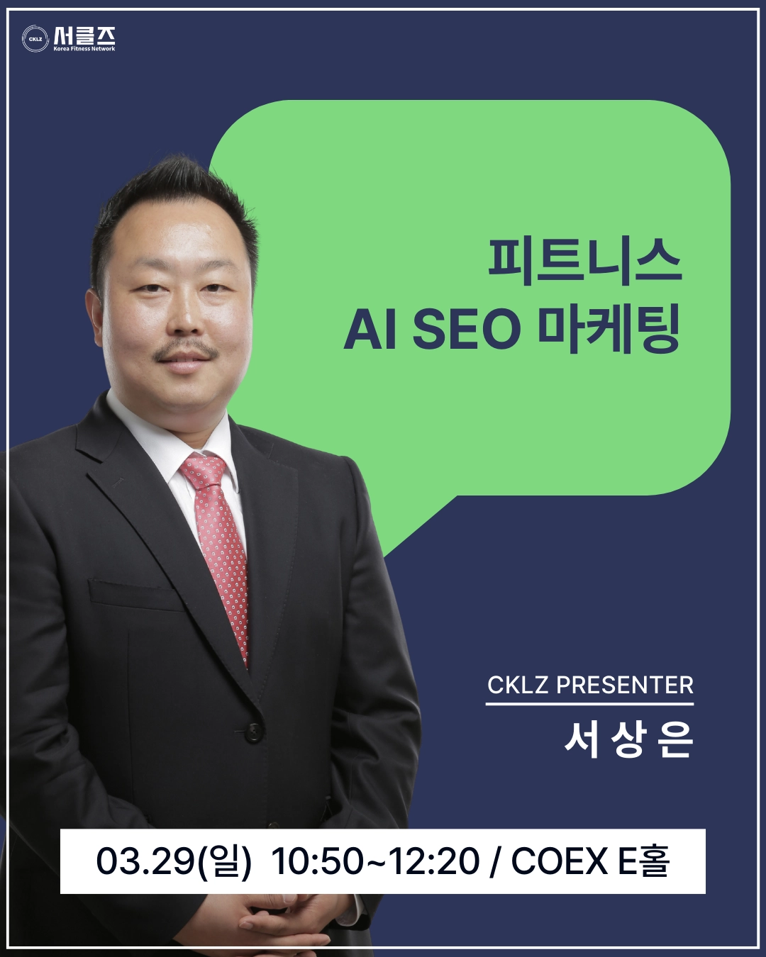 피트니스 AI SEO 마케팅 / 서상은 / 03.29(일) / 10:50~12:20 / COEX E홀