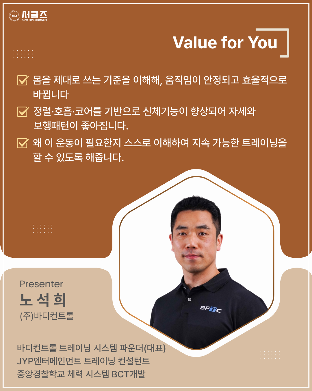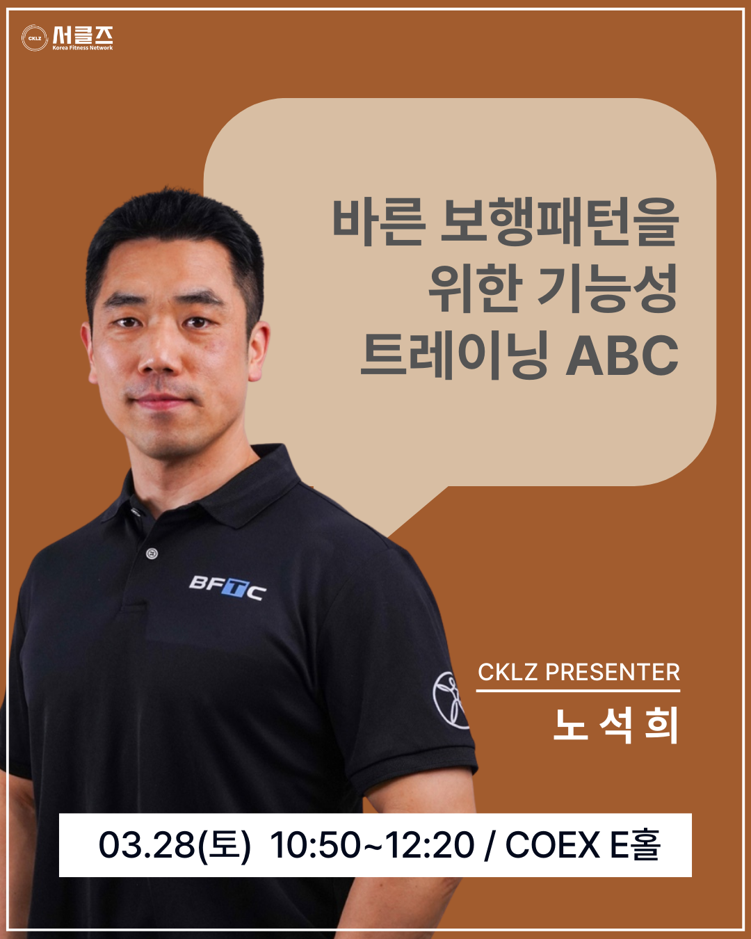 바른 보행패턴을 위한 기능성 트레이닝 ABC / 노석희 / 03.28(토) / 10:50~12:20 / COEX E홀