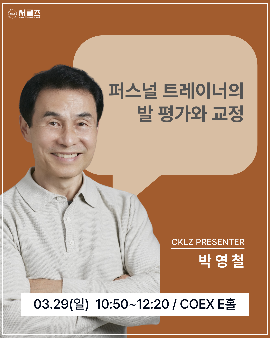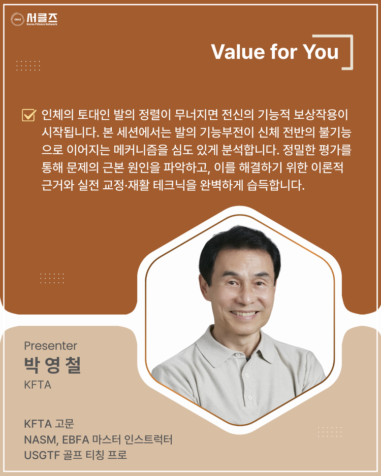 퍼스널 트레이너의 발 평가와 교정 / 박영철 / 03.29(일) / 10:50~12:20 / COEX E홀