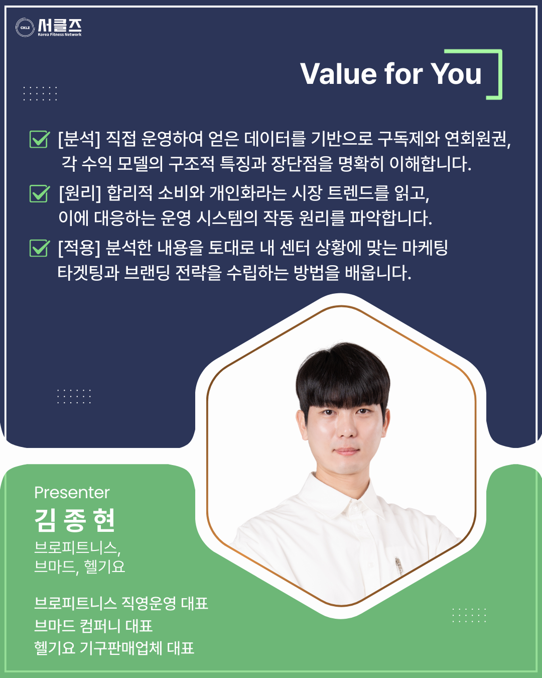 구독제 vs 연회원권 헬스장, 당신의 선택은? / 김종현 / 03.29(일) / 16:20~17:50 / COEX E홀