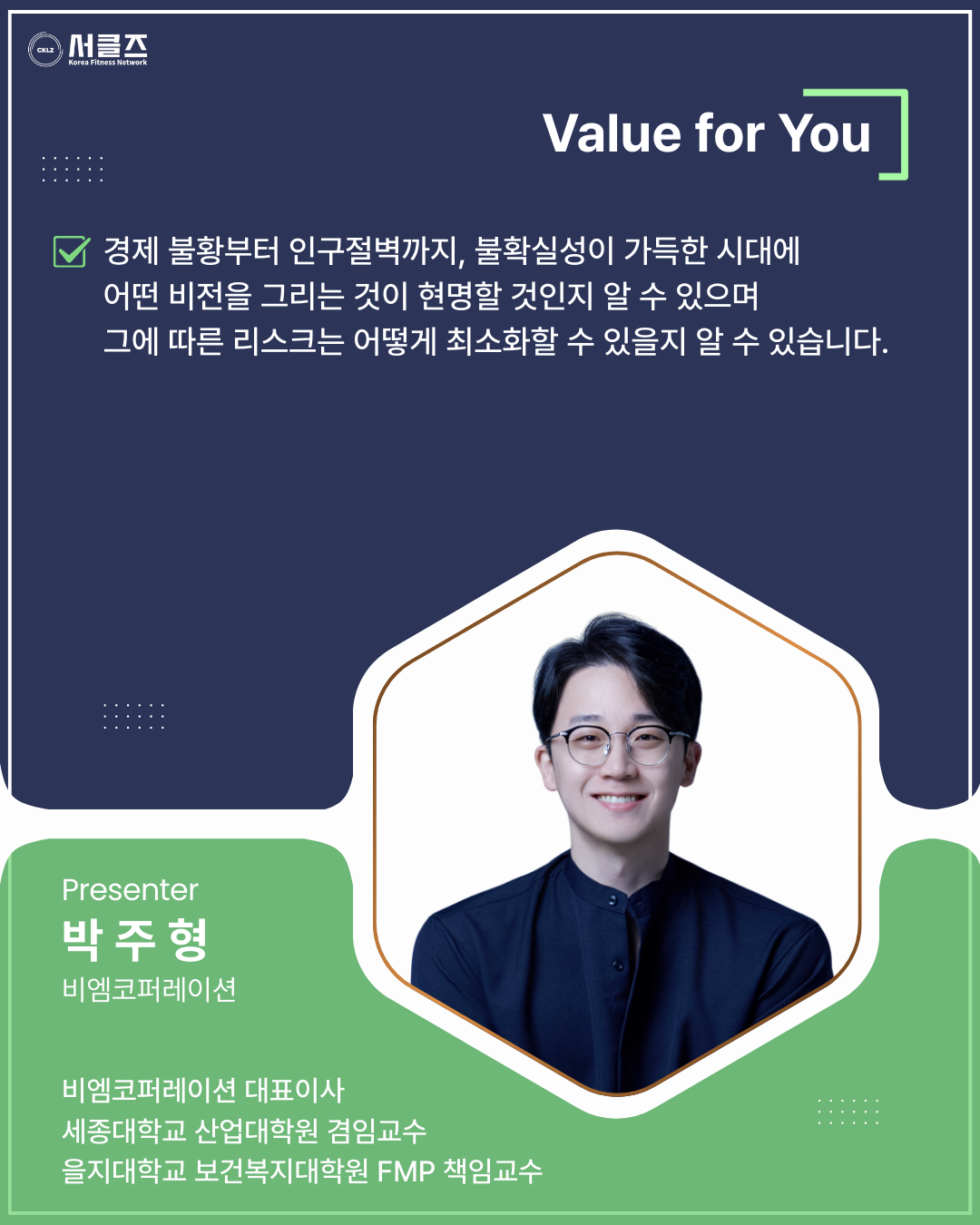 불확실성의 시대, 2026 피트니스 생존 시나리오와 리스크 관리 / 박주형 / 03.28(토) / 10:50~12:20 / COEX E홀