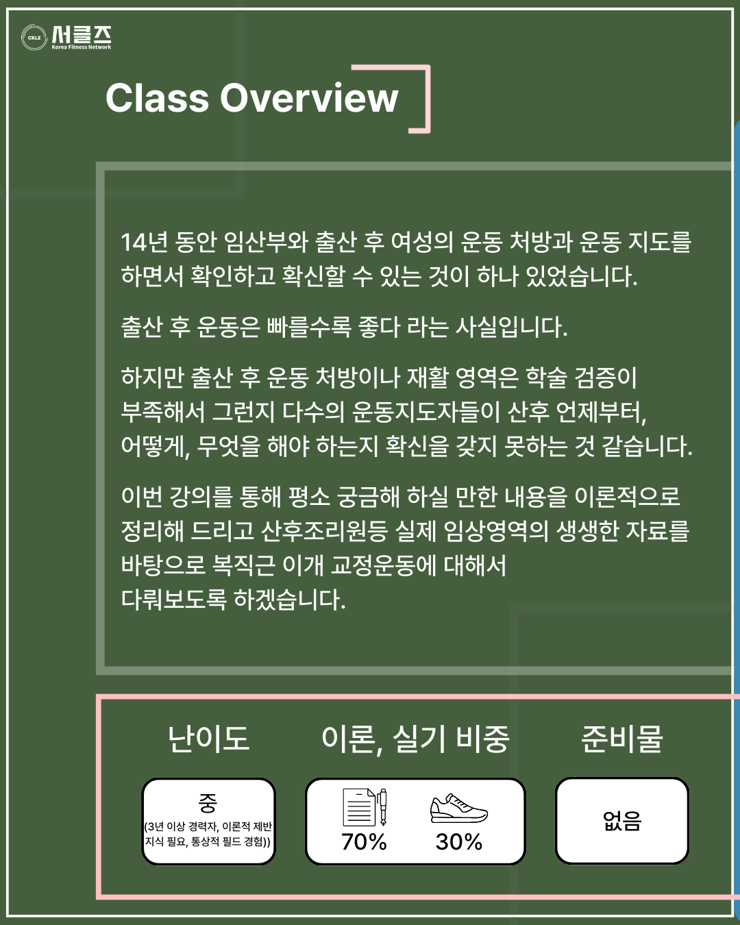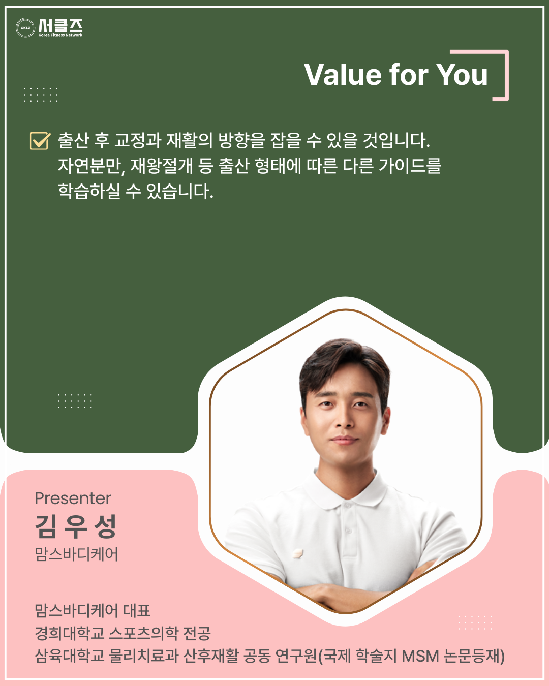 산후운동처방 가이드 / 김우성 / 03.29(일) / 09:00~10:30 / COEX E홀SALESOLDOUT