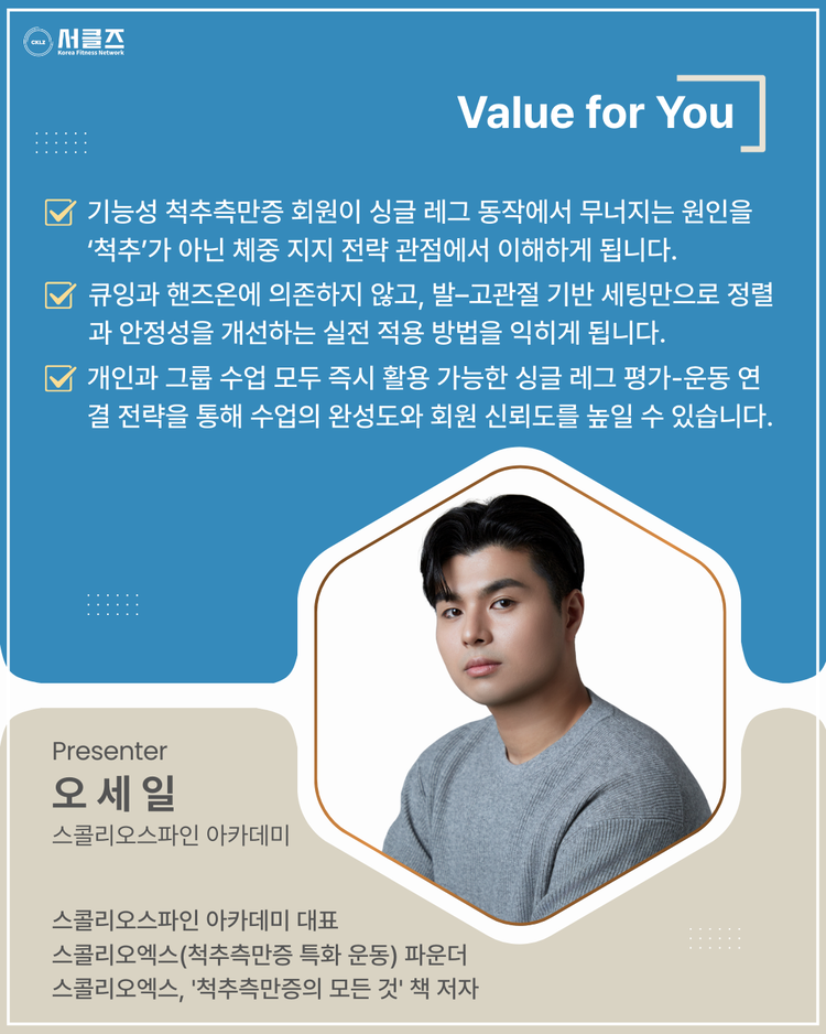 기능성 척추측만증, 왜 싱글 레그에서 무너질까? / 오세일 / 03.29(일) / 12:40~14:10 / COEX E홀
