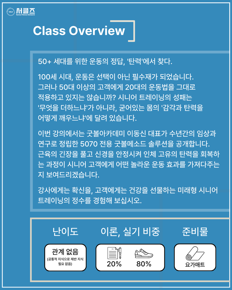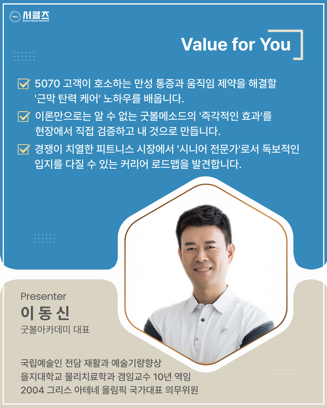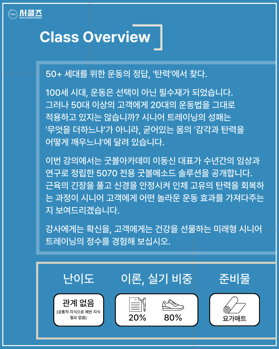 이제 운동의 주인공은 50+다 / 이동신 / 03.28(토) / 16:20~17:50 / COEX E홀