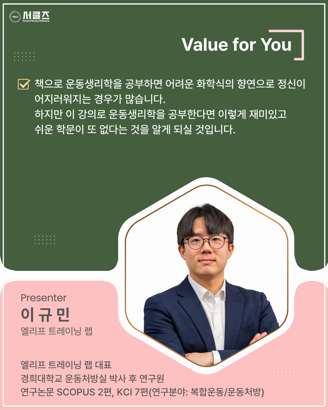 쉽고 재미있는 운동생리학 이야기(유산소 운동편) / 이규민 / 03.29(일) / 16:20~17:50 / COEX E홀
