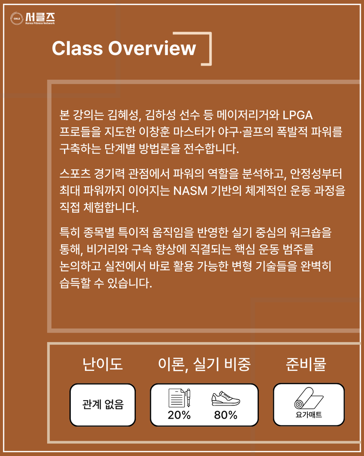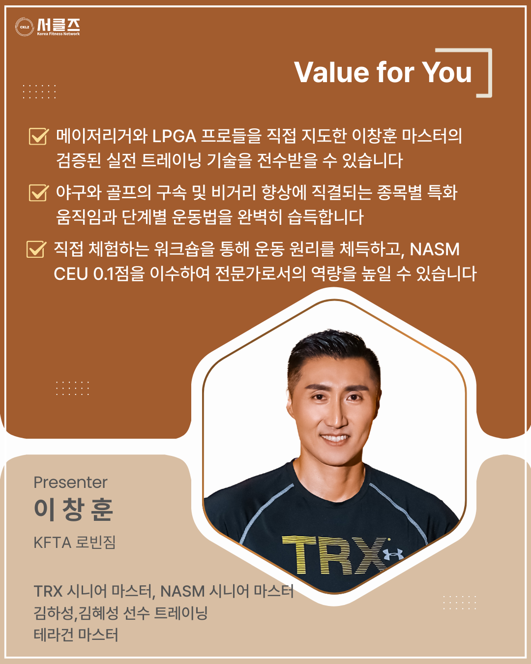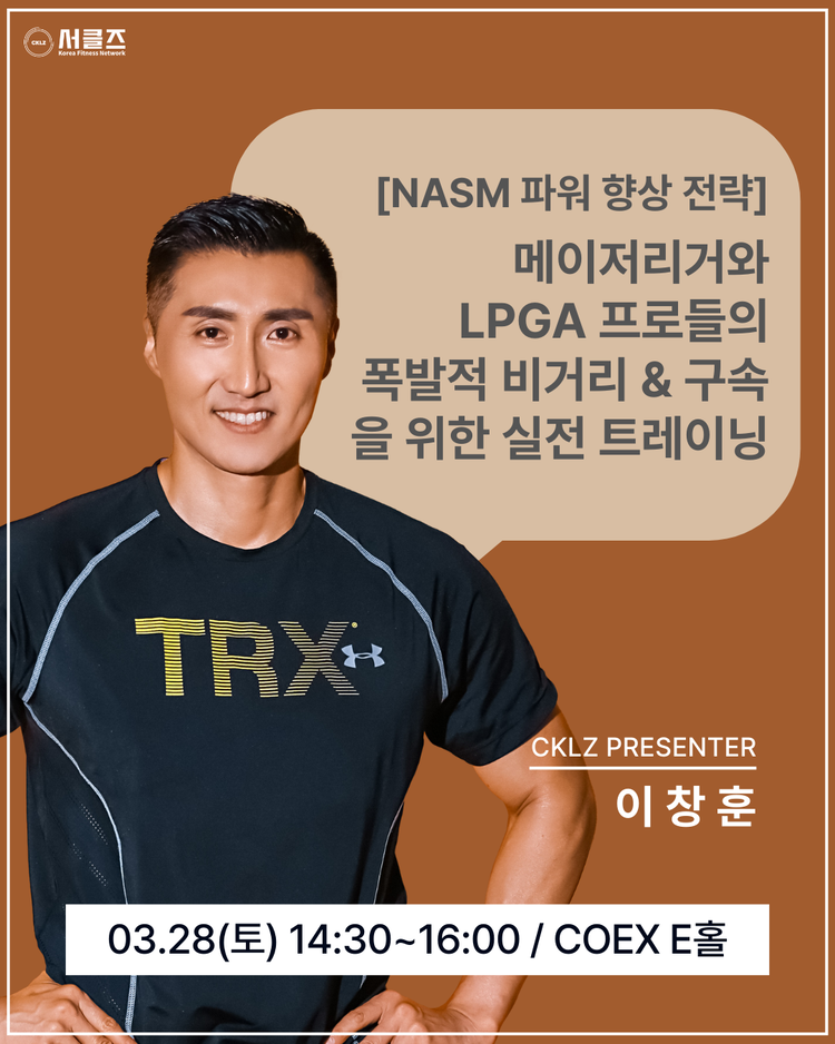 [NASM 파워 향상 전략]메이저리거와 LPGA 프로들의 폭발적 비거리 & 구속을 위한 실전 트레이닝 / 이창훈 / 03.28(토) / 14:30~16:00 / COEX E홀