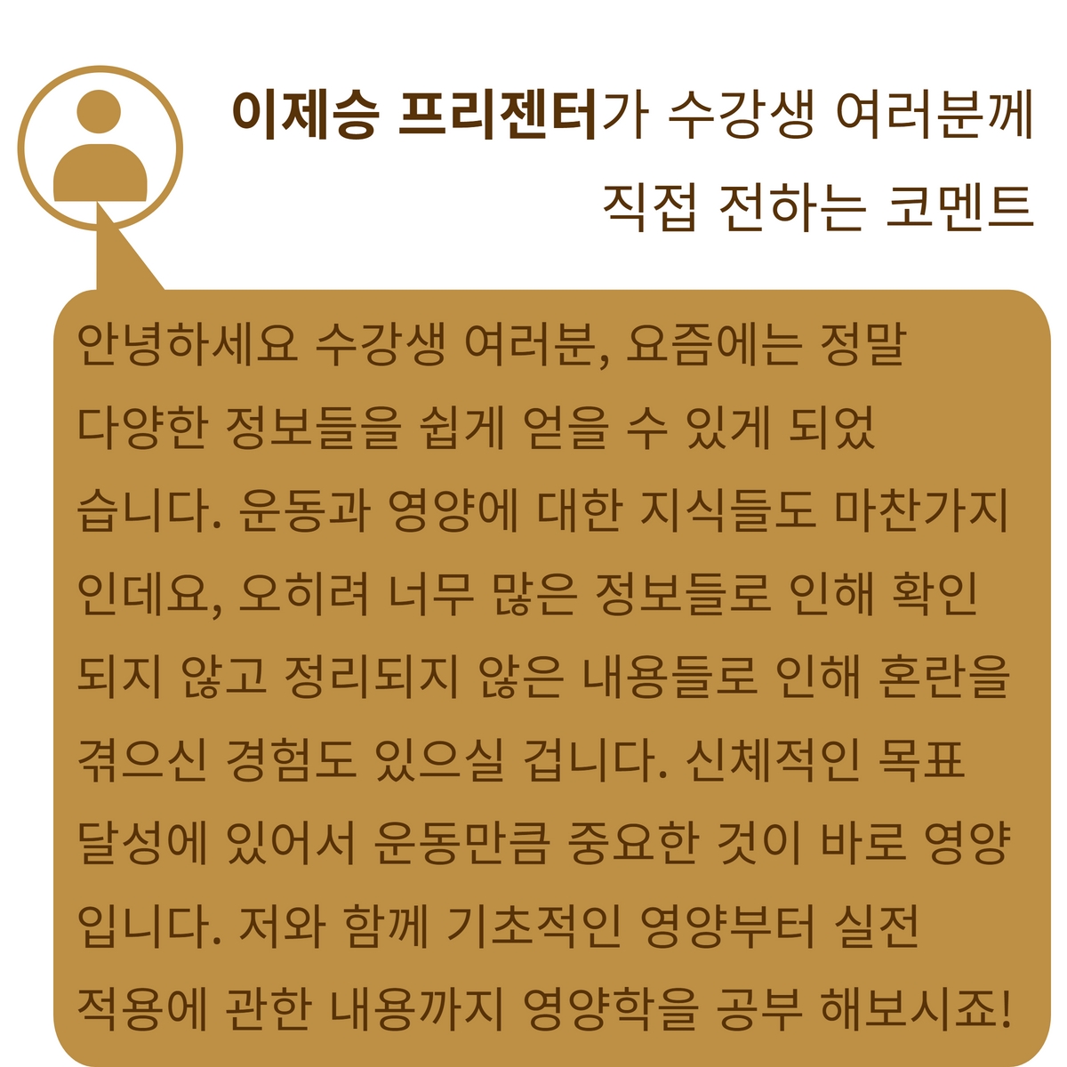 트레이닝 목표 달성을 위한 필수 영양학 / 이제승