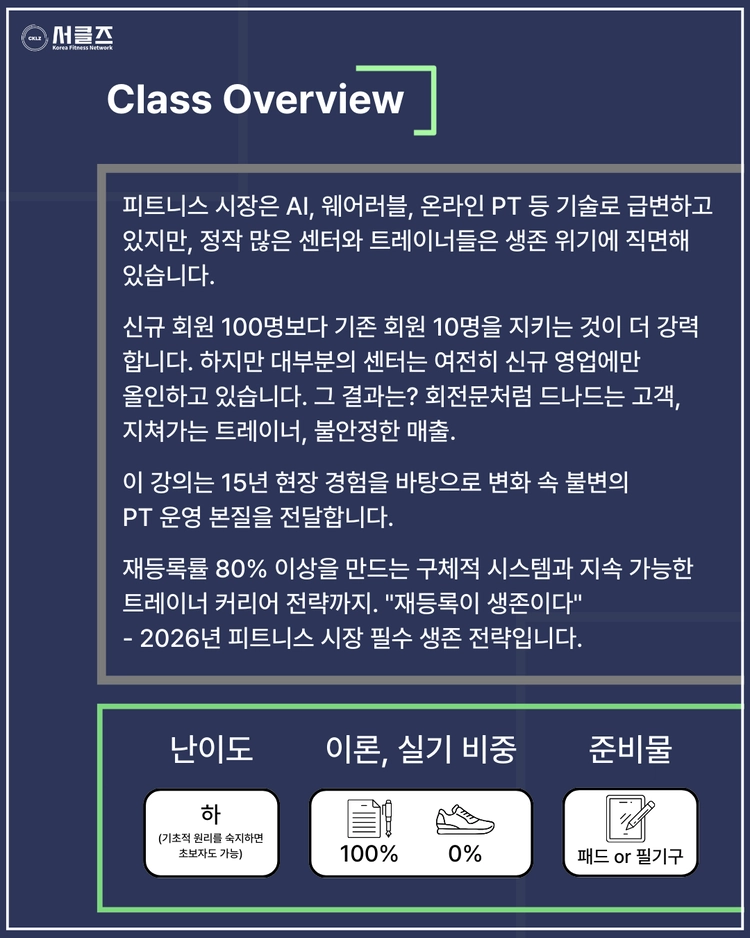 "재등록이 생존이다: 2026 PT 운영의 본질" / 강주한 / 03.28(토) / 09:00~10:30 / COEX E8SALESOLDOUT
