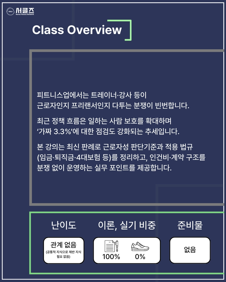 피트니스업 노무 이슈! 최신 판례로 이해하기 / 서은송 / 03.29(일) / 09:00~10:30 / COEX E8SALESOLDOUT