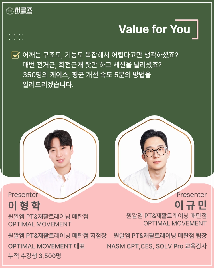 350명. 평균 5분. 어깨 불편함 개선법 공개합니다. / 이형학, 이규민 / 03.29(일) / 10:50~12:20 / COEX E4SALEHOTSOLDOUT